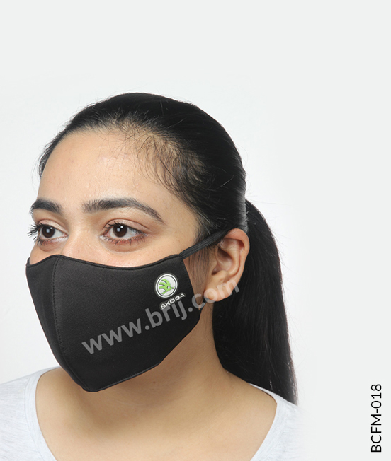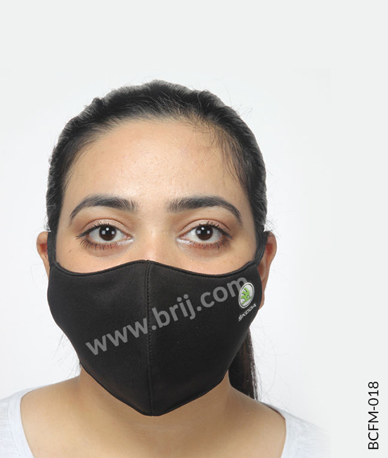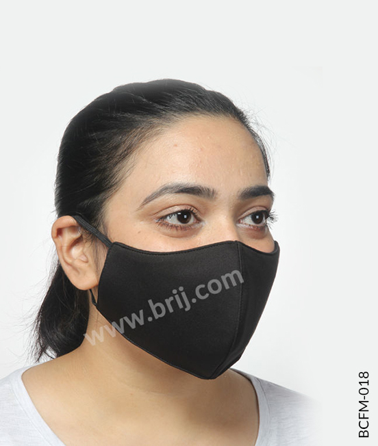 BCFM-0182 layer concave shape reusable face mask in 100% Poly Knit fabric outside and 100% cotton S/Jersey fabric inside, with soft polyester elastic earloops.