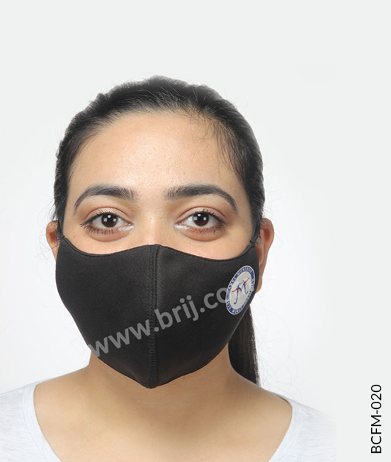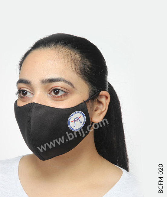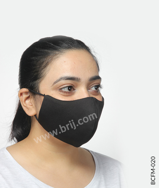 BCFM-0202 layer concave shape reusable face mask in 100% Poly knit fabric outside and 100% cotton S/Jersey fabric inside, with soft polyester elastic earloops.