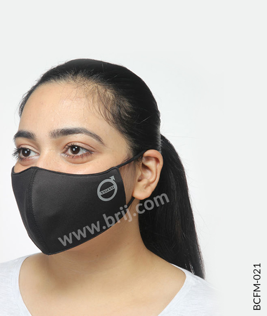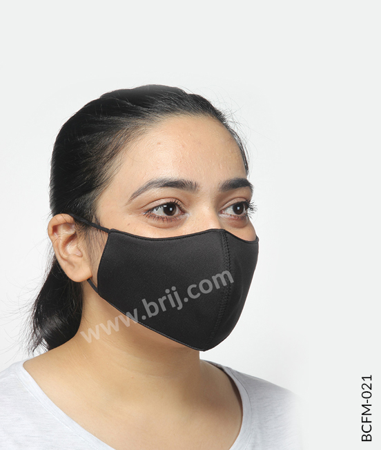 BCFM-0212 layer concave shape reusable face mask in 100% Poly knit fabric outside and 100% cotton S/Jersey fabric inside, with soft polyester elastic earloops.