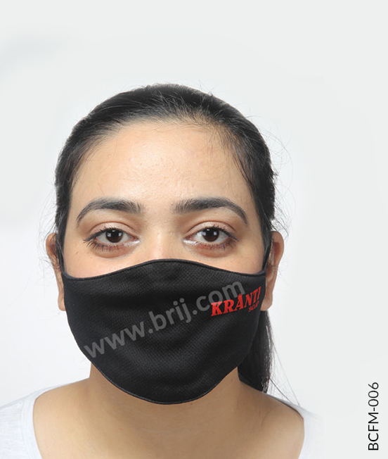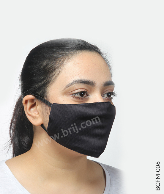 BCFM-0062 layer flat shape reusable face mask in 100% Poly CoolTouch fabric outside and 100% cotton S/Jersey fabric inside, with soft polyester elastic earloops.