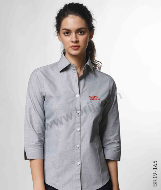 BR19-165Grey 3/4th sleeves formal shirt made in PolyCotton fabric with classic pointed collar including brand embroidery in front for a perfect corporate look.