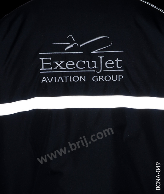 BCNA-049Navy full sleeves jacket in WR (Water Repellent and Wind Proof) fabric with polyfill quilting inside and embroidery at front and back for increased brand visibility with semi elasticted opening at cuffs and bottom for comfort fit. High-Vis reflective tapes at front, back and sleeves for safety and increased visibility.