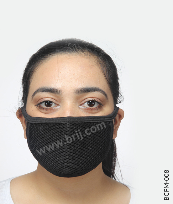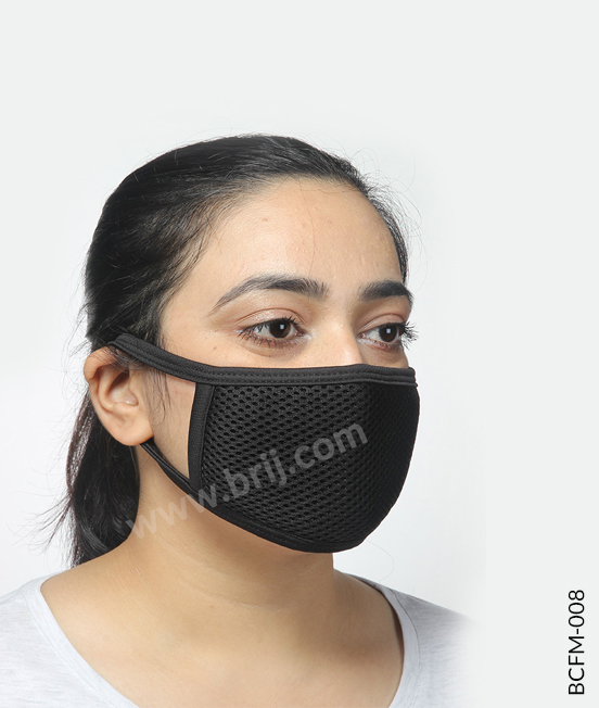 BCFM-0082 layer flat shape reusable face mask in 100% Poly Mesh fabric outside and 100% cotton S/Jersey fabric inside, with soft fabric earloops.