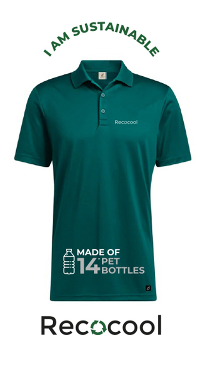 Recocool Products made from recycled Pet bottles and are converted into Flakes Fibre Yarn Fabric abd finally into a garment
